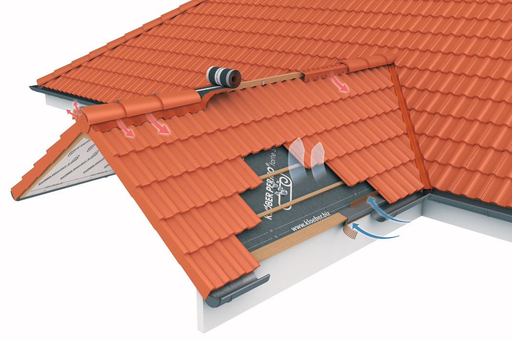 Zásadní vliv na životnost střešní konstrukce má funkční odvětrání střechy v oblasti hřebene a nároží. Dostatečné proudění vzduchu ve střešním plášti, mezi nasávacím otvorem v okapové hraně a hřebenem, odvádí přebytečné teplo a vlhkost a brání tak tvorbě plísní a dřevokazných hub.