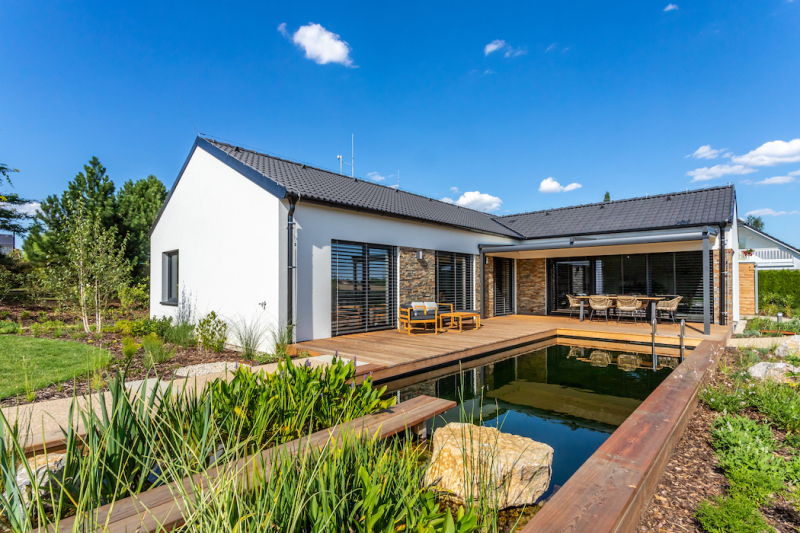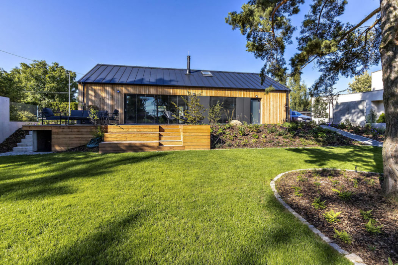 Manželé s již dospělými dětmi toužili uniknout z ruchu velkoměsta do klidné lokality, kde si vybudují praktické a úsporné bydlení. Našli krásný pozemek s výhledem na rybník. Vzhledem ke kouzlu místa a také k zálibě v přírodních materiálech byla dřevostavba nejlepší volba, která přicházela v úvahu.