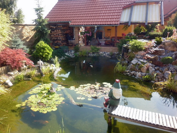 „Vše jsme dělalali vlastními silami – ručně kopaný bazén i studna, grilovací krb z kamenů, hrad pro děti z kůlů a desek. Manžel je šikulka…“