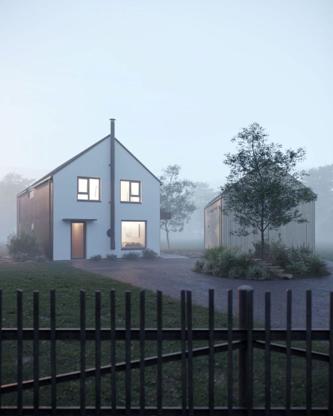 Rodinný dům s ateliérem je pro Lukáše Větrovce dlouhodobý projekt, jenž začal už hledáním pozemku. Ten vyhlídnutý nakonec v aukci získali jiní, dobré vztahy, které mezitím v lokalitě udělal, mu však přihrály další parcelu. Dům a stodolu si nejen sám navrhl, i vyprojektoval a sám si taky stavbu řídí. Betonové základové desky a stropy kombinuje s jednovrstvým zdivem HELUZ, které mu v průběhu stavby dopřeje více svobody v plánování a praktičtější přístup.