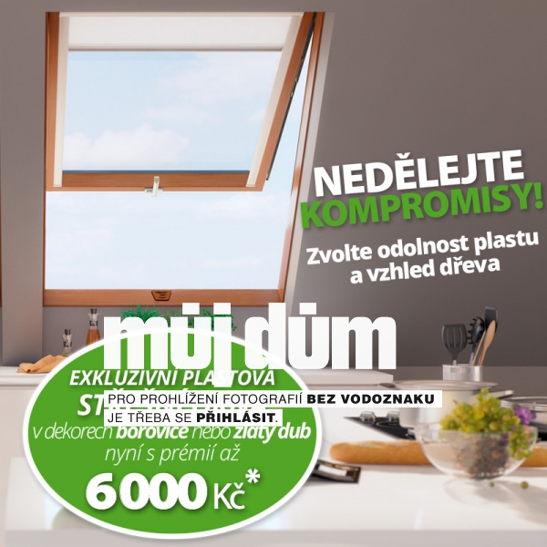 Rozhodujete se mezi odolností plastových oken a vzhledem dřeva? Už nemusíte déle váhat. Zvolte střešní okna z vícekomorových PVC profilů v dekoru zlatý dub nebo borovice a získejte prémii až 6000 Kč (při koupi 6 kusů plastových střešních oken v dekoru se zasklením U5).