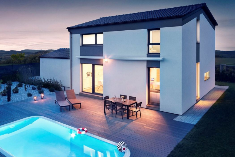 za rok, celková průvzdušnost n50 měřená testem neprůvzdušnosti nepřekročí 0,6/h a celková roční měrná potřeba primární energie (vytápění, teplá voda, pomocná energie, domácí spotřebiče, osvětlení) je nanejvýš 120 kWh/m2.